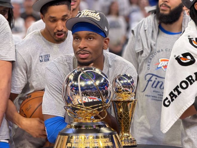 凭借着西决场均31.4分5.2篮板8.2助攻的完美数据,亚历山大收获西决MVP奖杯,拿到全部的9张投票!本赛季至今,亚历山大已经拿到了得分王+常规赛MVP+常规赛最佳一阵+全明星+NBA杯最佳阵容+西决MVP,迎来大满贯,距离全满贯只差总冠军和总决赛MVP。当全场比赛结束后,爱德华兹搂着亚历山大久久不肯防守,又是拍背又是捶胸,爱德华兹确实应该心服口服,从G1的空气哨引发巨大争议后,亚历山大得到吹罚眷顾越来越少,但是他的统治力越来越强!实话实说,西决很丑陋,也揭示了五大事实。